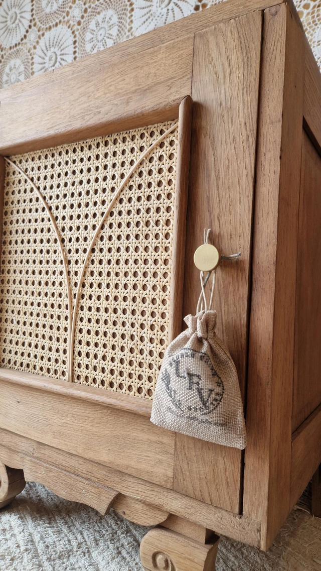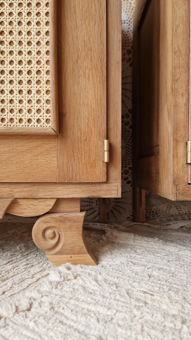 Les portes sont habillées de cannage naturel et de moelle de rotin.